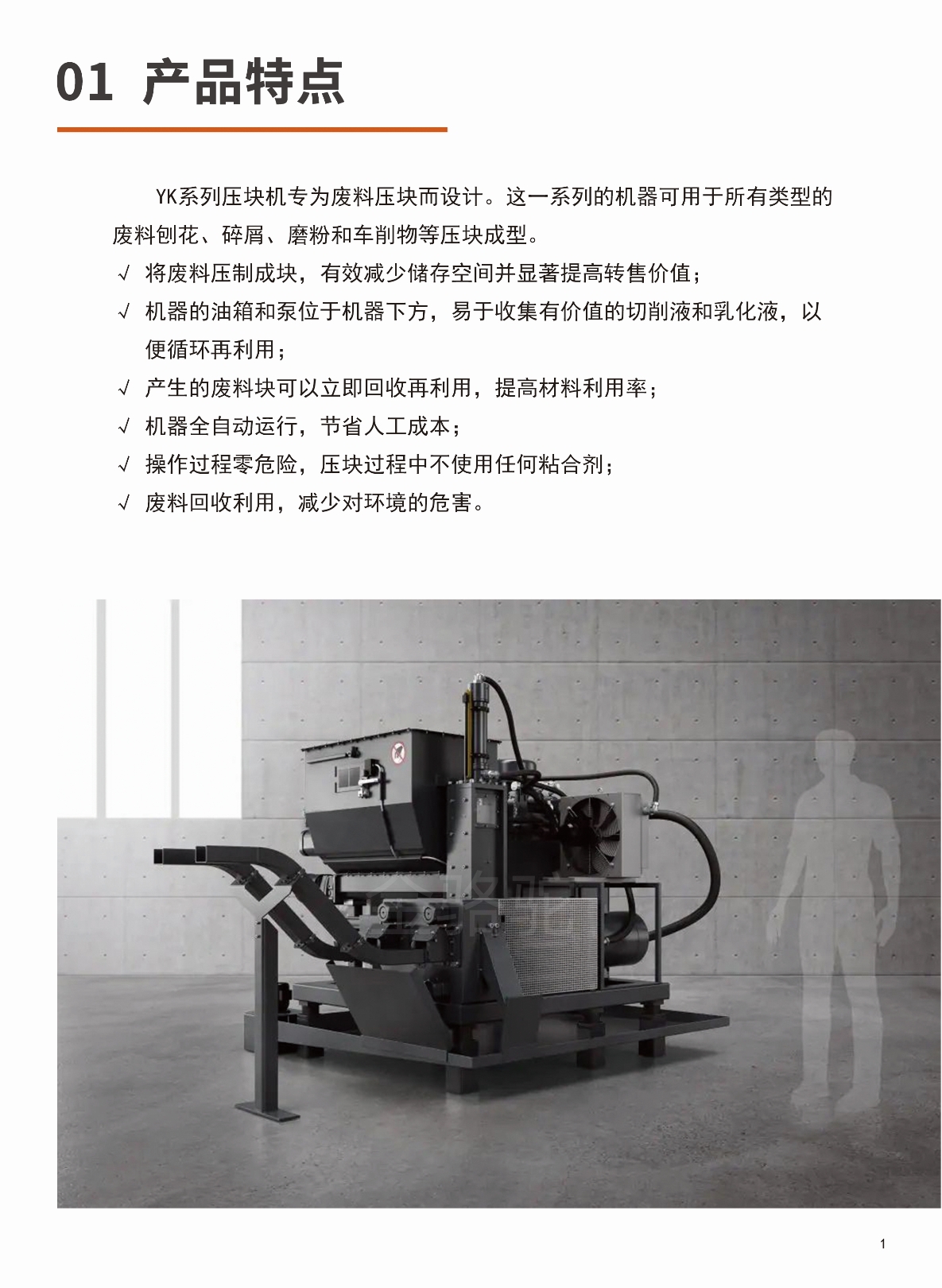 1、將廢料壓制成塊,有效減少儲存所占空間及顯著(zhù)提高轉售價(jià)值;